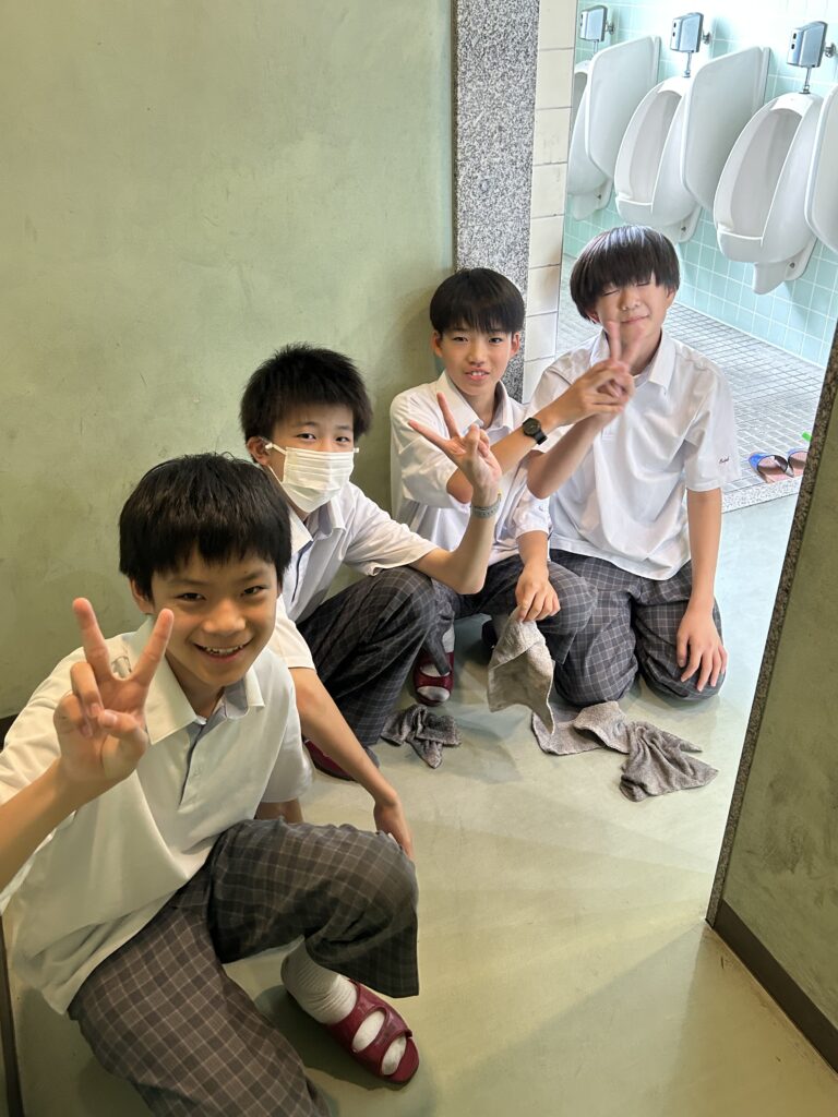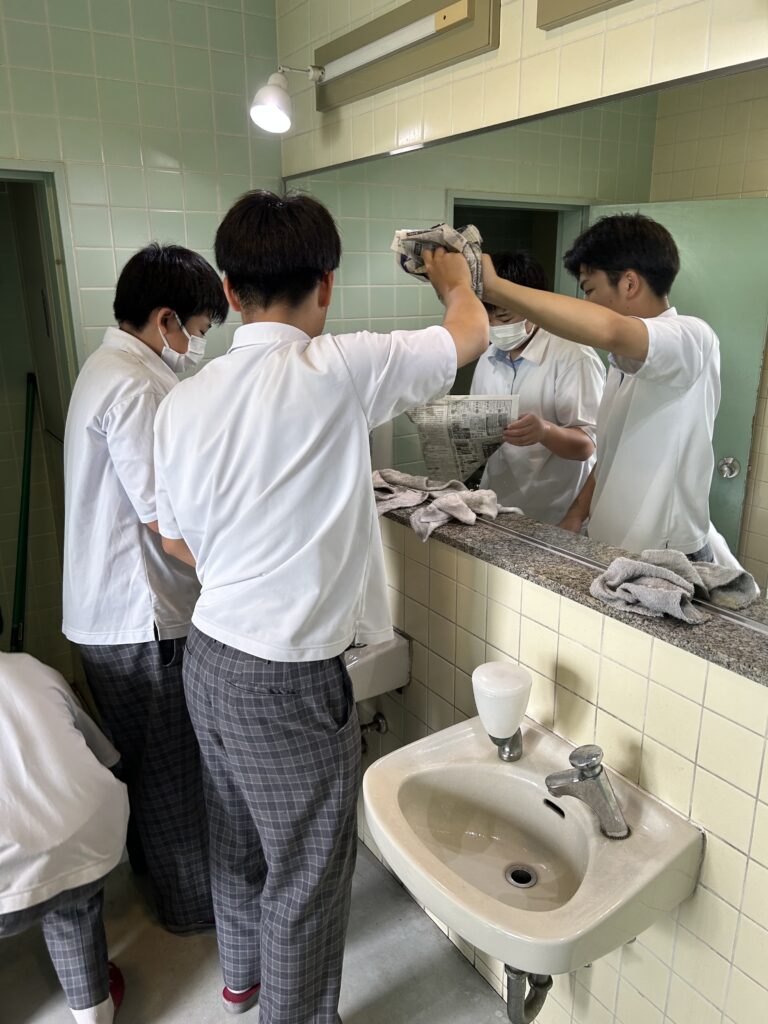 率先してトイレの清掃をしている人も。これも大切な“準備”ですね。