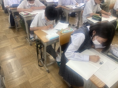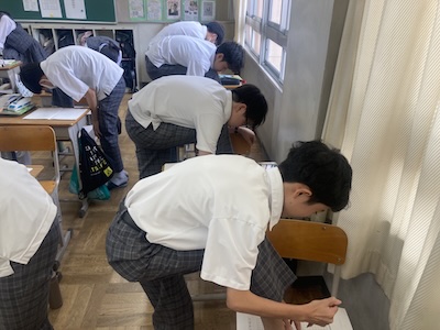 最後に自分の体重(N)を両足の面積(平方m)で割ります。ヒトの足の裏にかかる圧力はある範囲の値におさまります。単位の換算に手こずったり、平方cmから平方mに換算するときにミスをしたりして最初はかけ離れた値が出る生徒が多かったですが、最終的にはある一定範囲の圧力におさまりました。