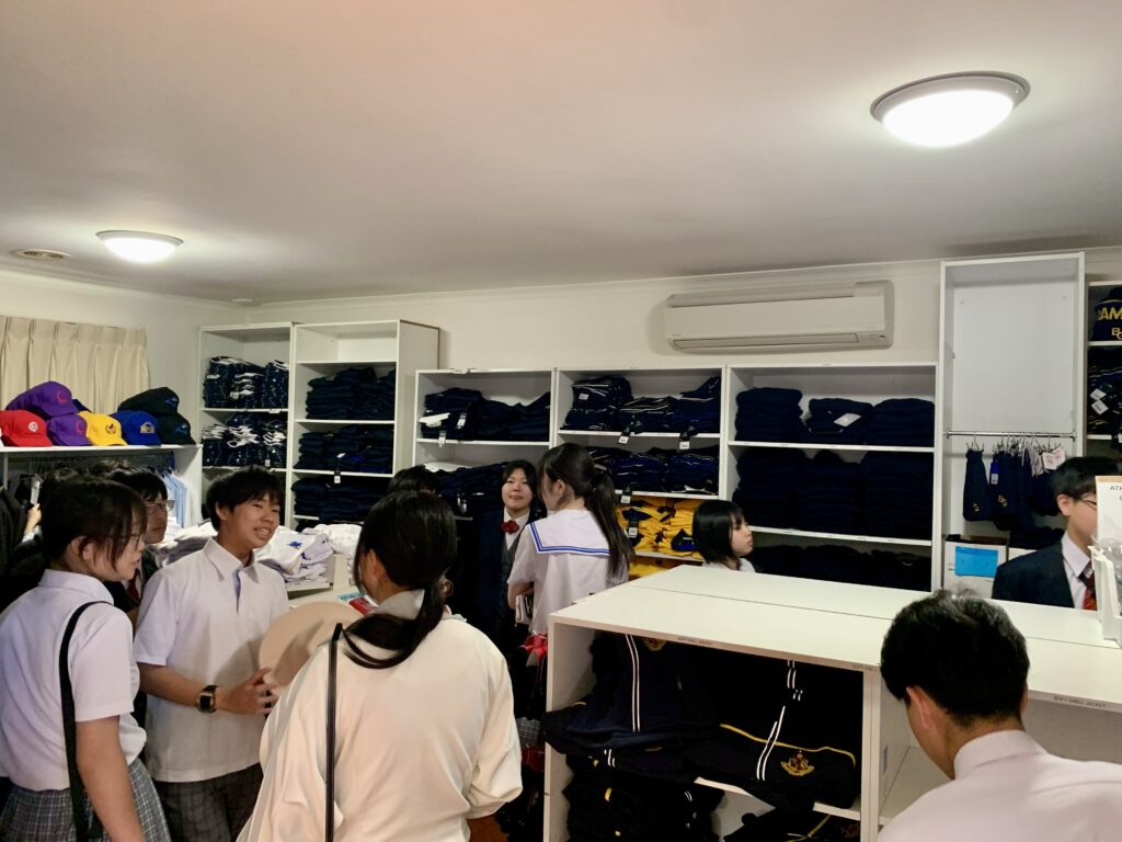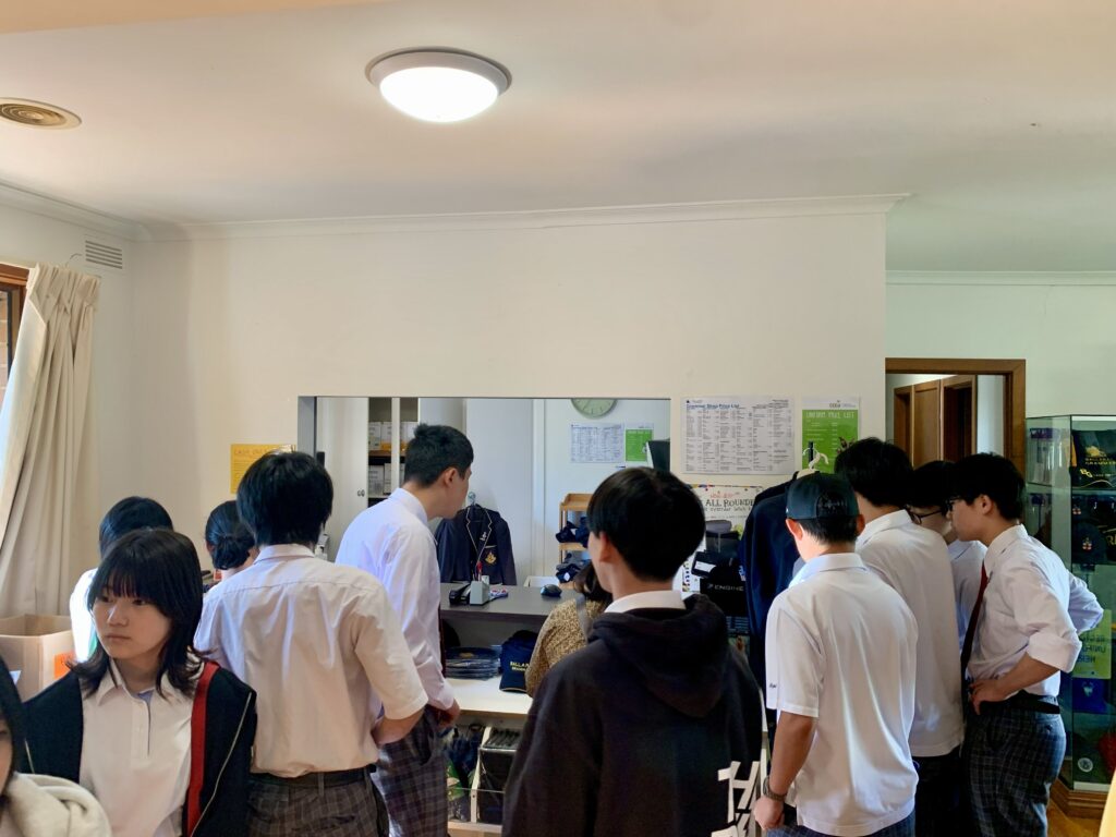 いよいよ、Grammar Schoolを旅立つ日が来ました。購買部で記念のお土産を見ています。